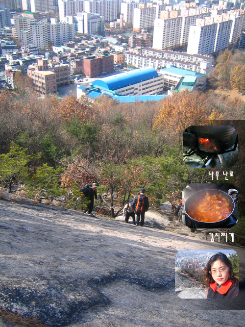 주말....날씨가 쌀쌀한데도 불구하고 불암산 다녀왔습니다. 암벽이 많아서 그런지 사람들도 거의 없고 조용하고 좋았습니다. 사진에 보이는 작은 사진들은 불암산 중간에 있는 매점인데요...나무로 불을 지피는 난로와 등산객이 쌓온 김치찌게를 나눠 먹었답니다.