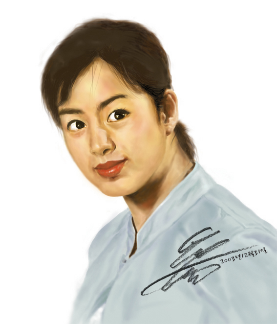 제가 김태희신인때 그린그림인데요...미완성이지만 평가부탁드려요....^^제료는 포토삽7.0브러쉬툴입니다.