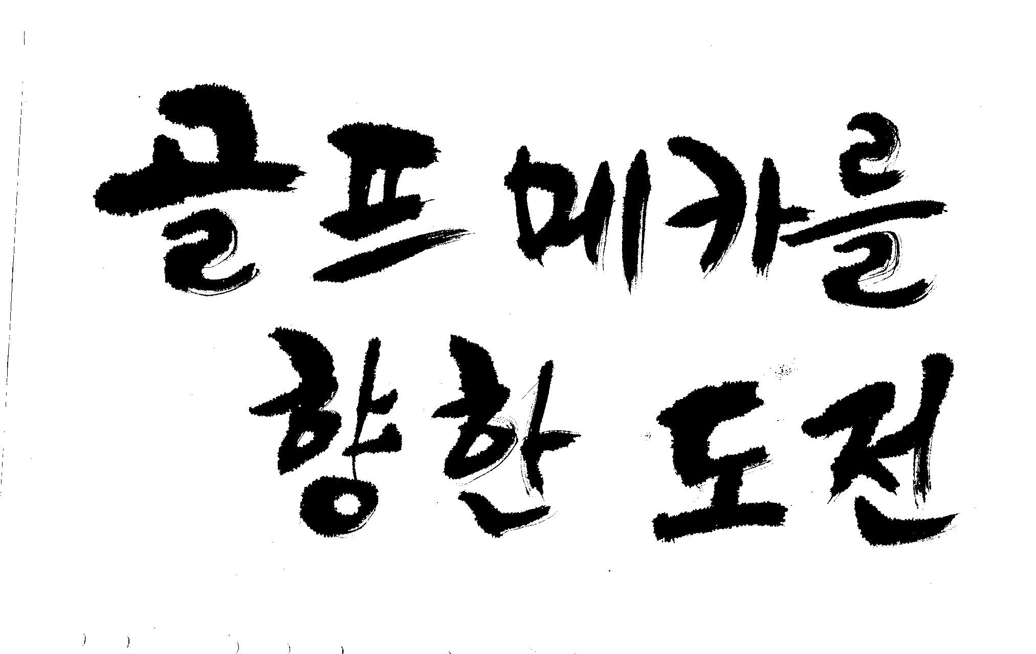 우경의 행복한 캘리세상-골프메카 김철호 일반 1 8775 2009.07.18 10:27 > > > > > 리듬감을 최대한 살리고 ㅡ 스포츠의 운동감과 밝음 > > 기교섞인 획을 배제--일반적인 느낌 > > 굵기변화를 통하여 도전 낱말을 강조 > > 스타일은 비슷하지만 ...한 사람이 썼으니까 ㅎㅎㅎ > > 서로 다른 글꼴을 올린 것은... 비교하여 보시고... > > 편집자에게 선택권을 주는 것입니다 > > >